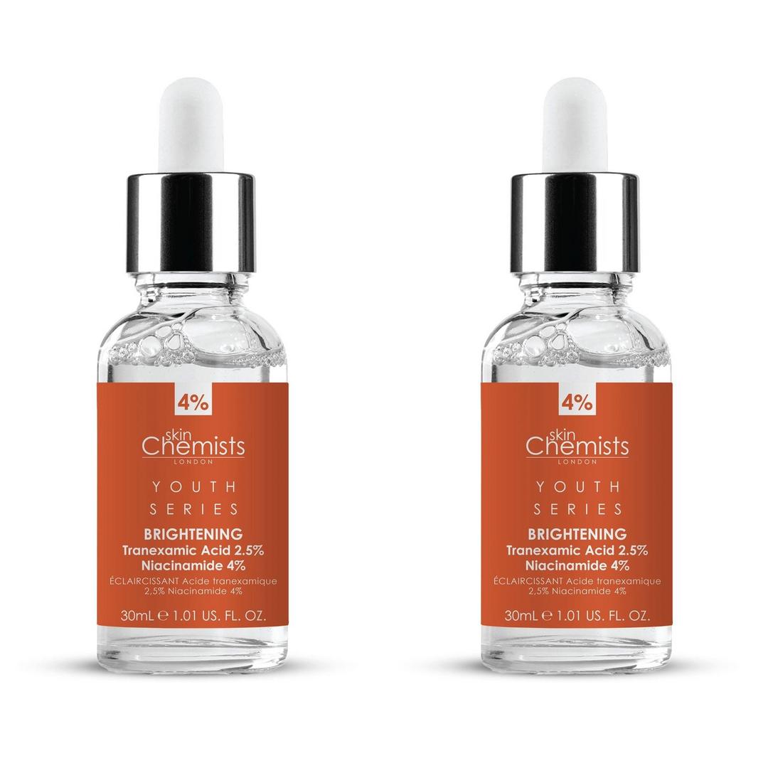 - Brightens skin tone and reduces hyperpigmentation with Tranexamic Acid