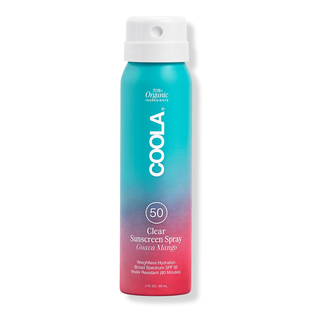 COOLA's Travel Size Classic Body Organic Sunscreen Spray SPF 50 is a lightweight, fast-absorbing, non-aerosol spray with 70%+ certified organic ingredients.