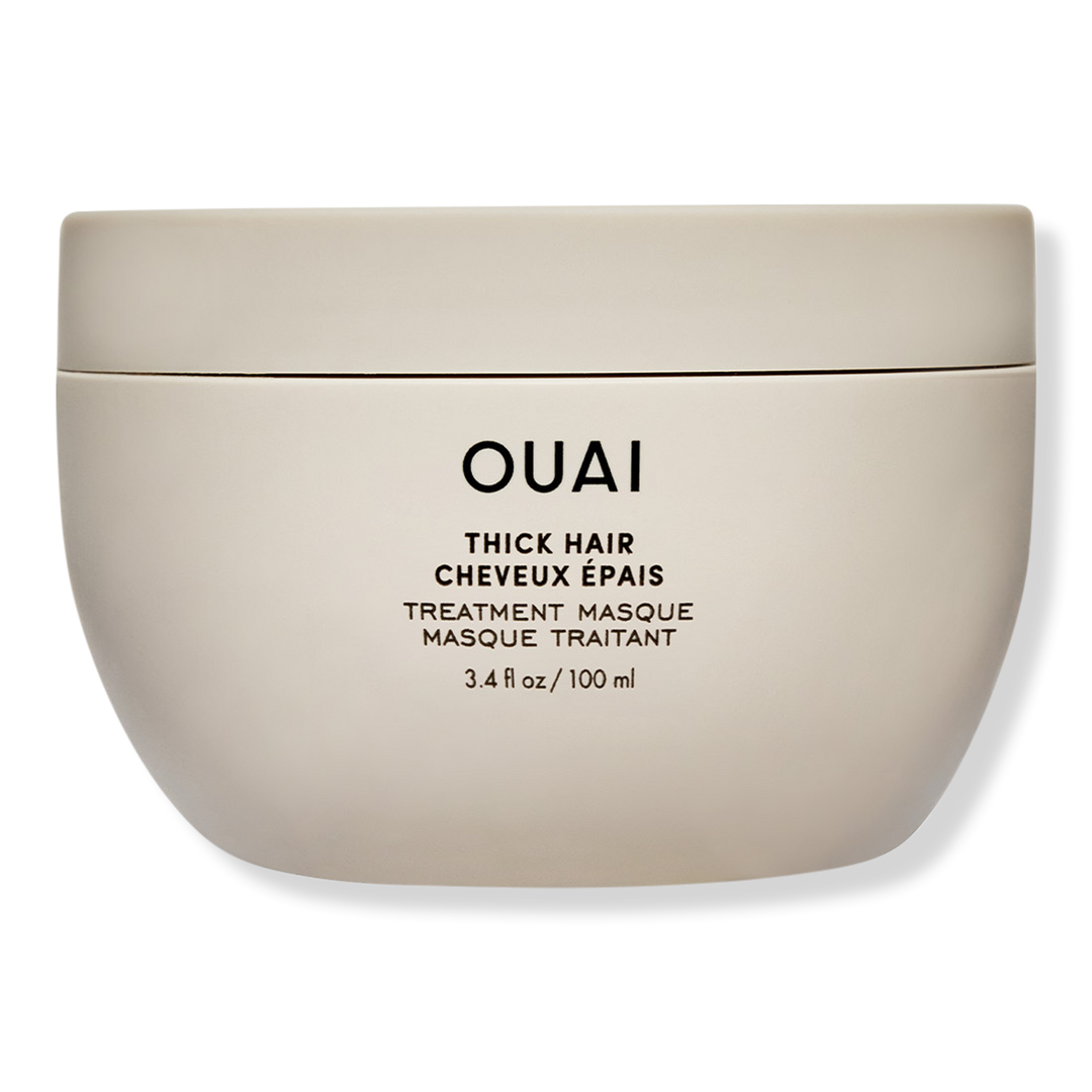 OUAI's Thick Hair Treatment Masque is a mask that helps restore hydration, fight frizz, smooth split ends and strengthen thick hair with almond, macadamia & olive oils, shea & illipe butters and hydrolyzed keratin.
