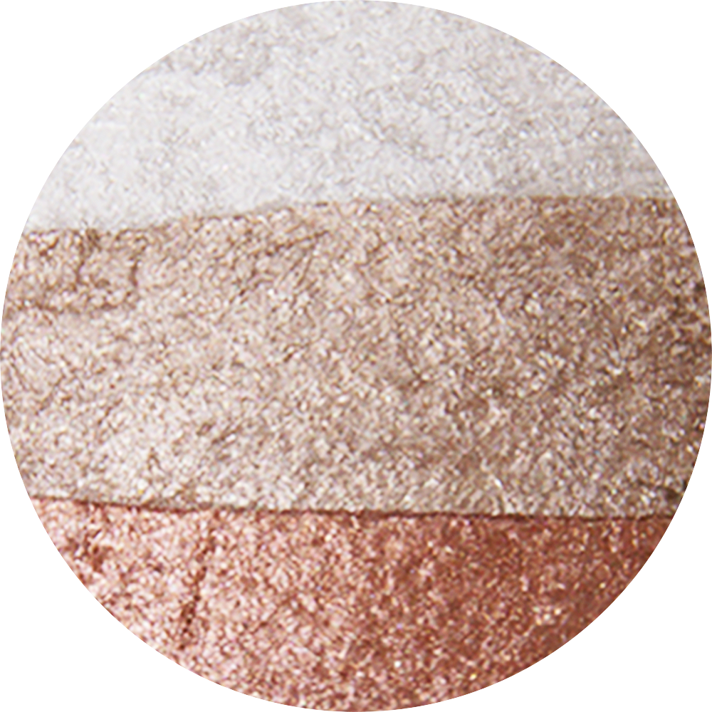 Apply the light shade across the entire upper lid for luminous base color. Use the darker shade on the outer corner and blend inward for depth and definition. Blend all three shades together for a multidimensional, radiant effect. Apply dry for a soft, everyday look or wet for vibrant, high-impact color. Pro Tip: Mix the lightest shade with a damp brush for a glowing inner-corner highlight.