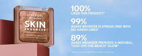 Get a “just-off-the-beach” glow with the COVERGIRL TruBlend Skin Enhancer Baked Luminous Bronzer. Swirled with two shades for unique, multidimensional, sun-kissed warmth and a luminous finish. Baked with Hyaluronic Acid and White Rose Extract to help hydrate and soothe skin. Available in 4 shades.