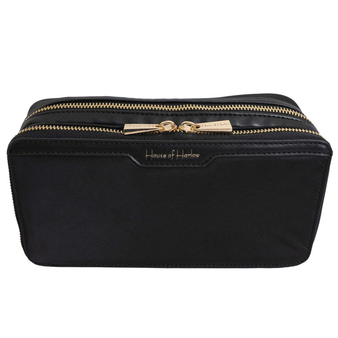 Refined and functional, the House of Harlow 9" Twill Nylon Cosmetic Case is ideal for travel, daily touch-ups, or at-home storage. Crafted from durable twill nylon with a sleek profile, it features practical interior organization to keep beauty essentials protected and neatly arranged.