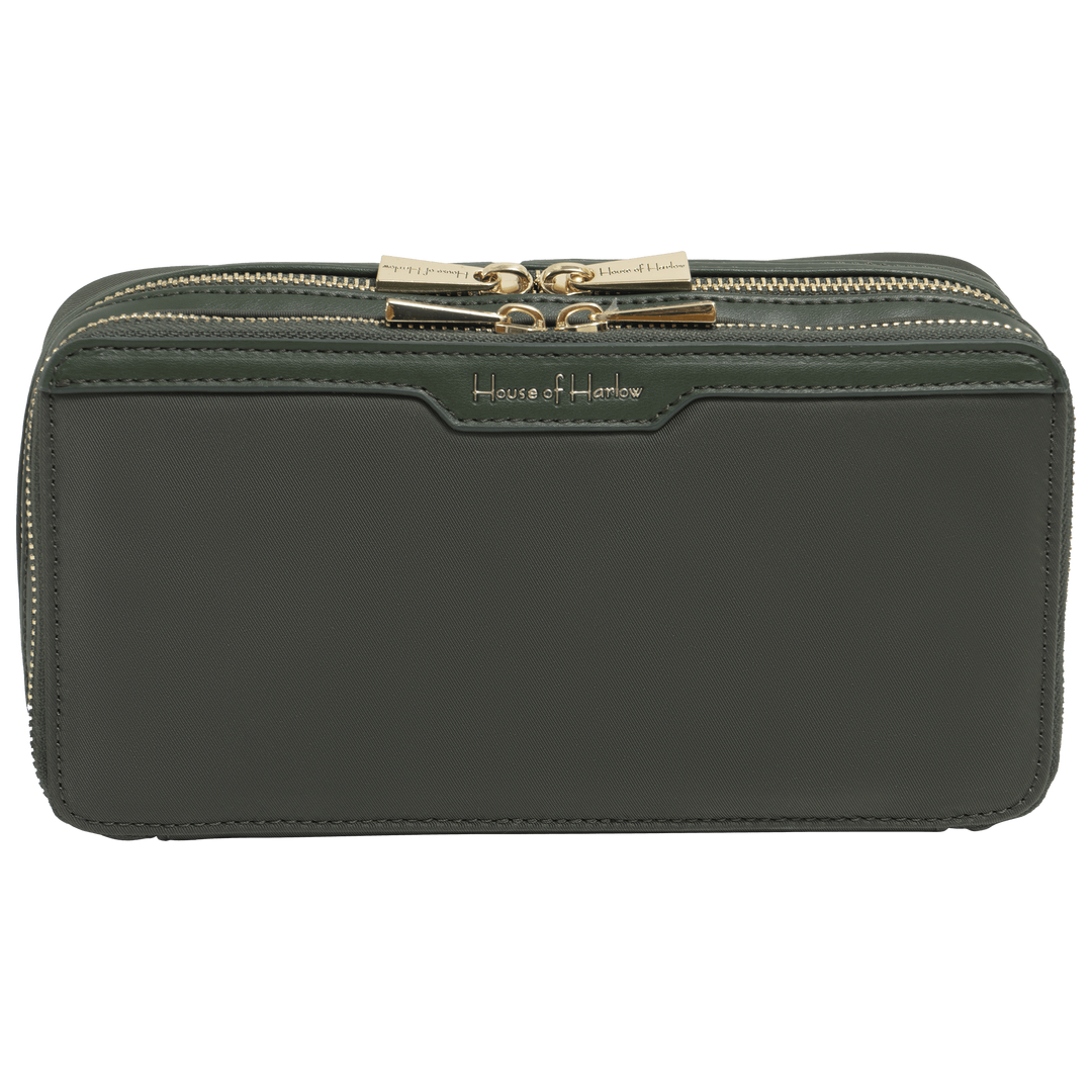 Open the House of Harlow 9" Twill Nylon Cosmetic Case and place your beauty essentials inside, using the interior features to keep items organized and secure. Its streamlined shape makes it easy to slip into a tote, suitcase, or vanity drawer for travel, daily touch-ups, or at-home storage. Zip closed to keep everything protected and ready to go.