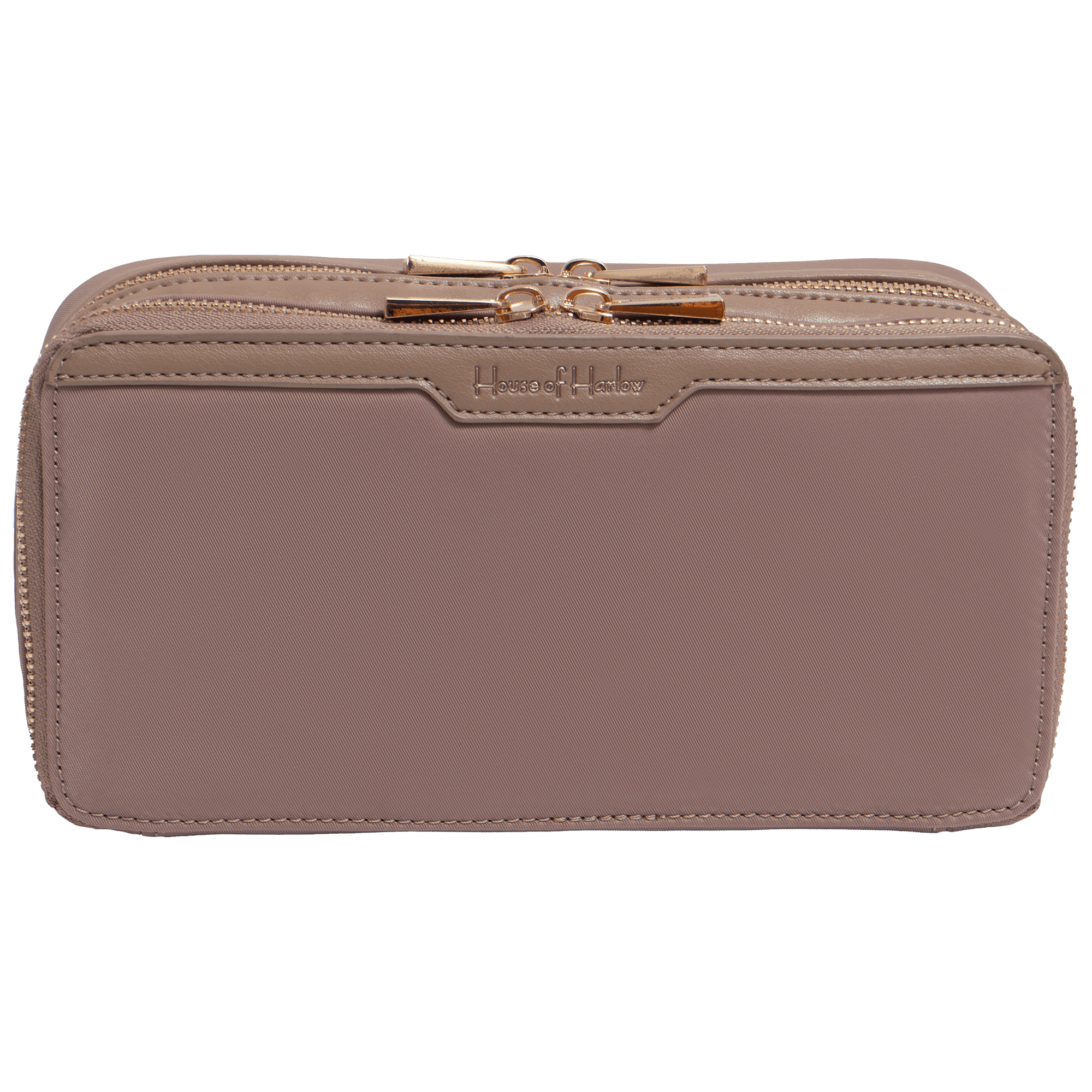 Open the House of Harlow 9" Twill Nylon Cosmetic Case and place your beauty essentials inside, using the interior features to keep items organized and secure. Its streamlined shape makes it easy to slip into a tote, suitcase, or vanity drawer for travel, daily touch-ups, or at-home storage. Zip closed to keep everything protected and ready to go.