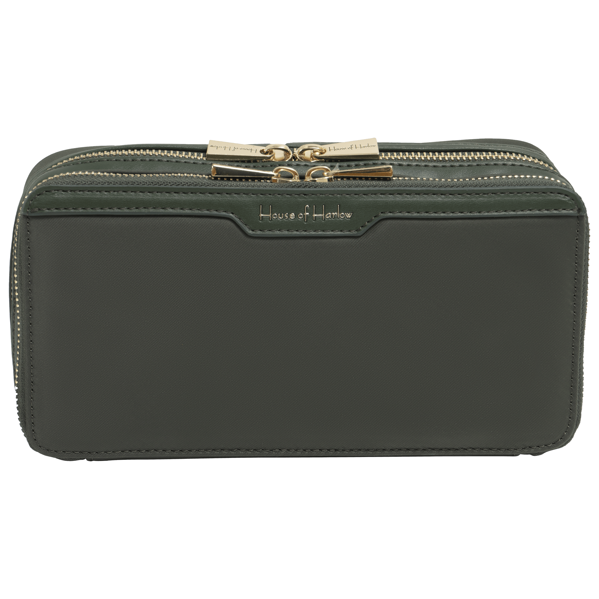 Open the House of Harlow 9" Twill Nylon Cosmetic Case and place your beauty essentials inside, using the interior features to keep items organized and secure. Its streamlined shape makes it easy to slip into a tote, suitcase, or vanity drawer for travel, daily touch-ups, or at-home storage. Zip closed to keep everything protected and ready to go.