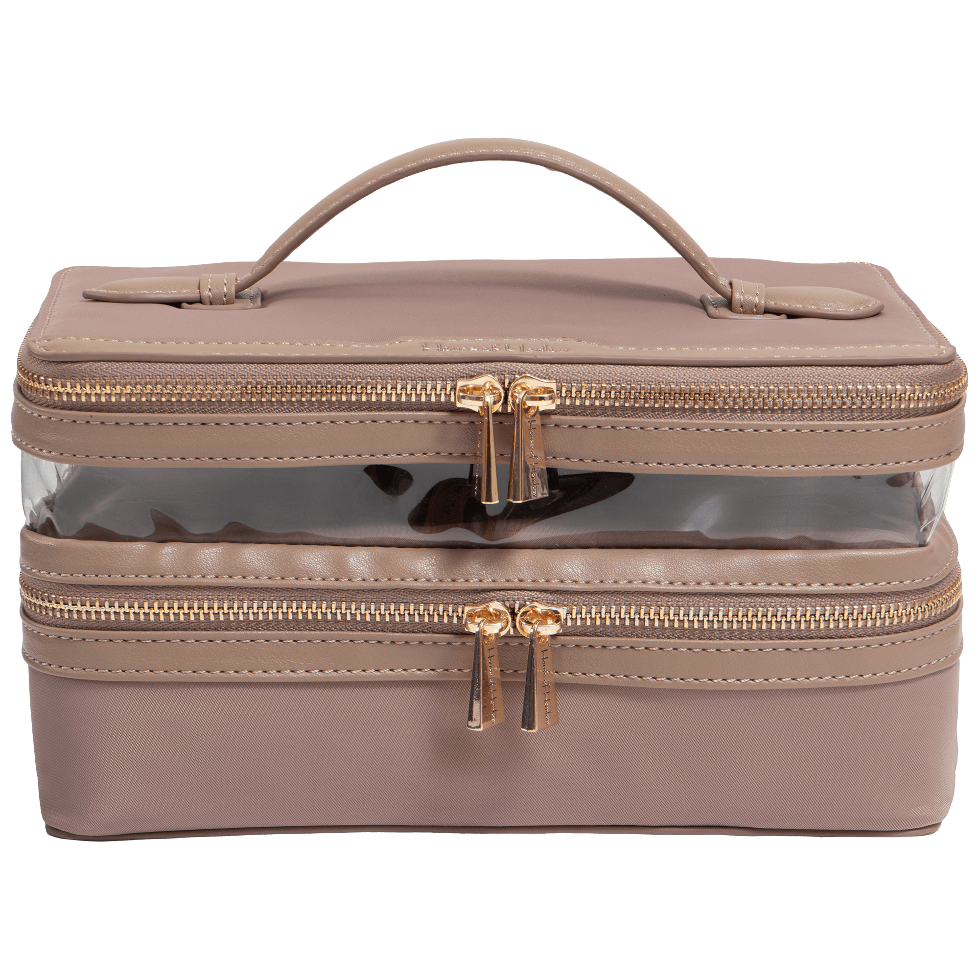 Open the House of Harlow 9½" Twill Nylon Top Handle Toiletry Case and arrange your toiletries and beauty essentials inside using the interior storage to keep items organized and secure. Carry it easily by the top handle or pack it into your luggage for travel. Zip it closed to keep everything protected and within reach wherever you go.