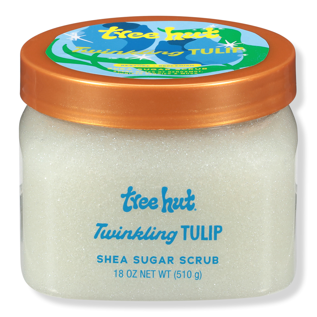 Reveal glowing skin with Tree Hut Twinkling Tulip Shea Sugar Body Scrub, featuring a blooming scent of tulip, juniper berries and soft musk. This hydrating exfoliant blends sugar, shea butter, and moisturizing oils to leave skin smooth, soft and glowing.