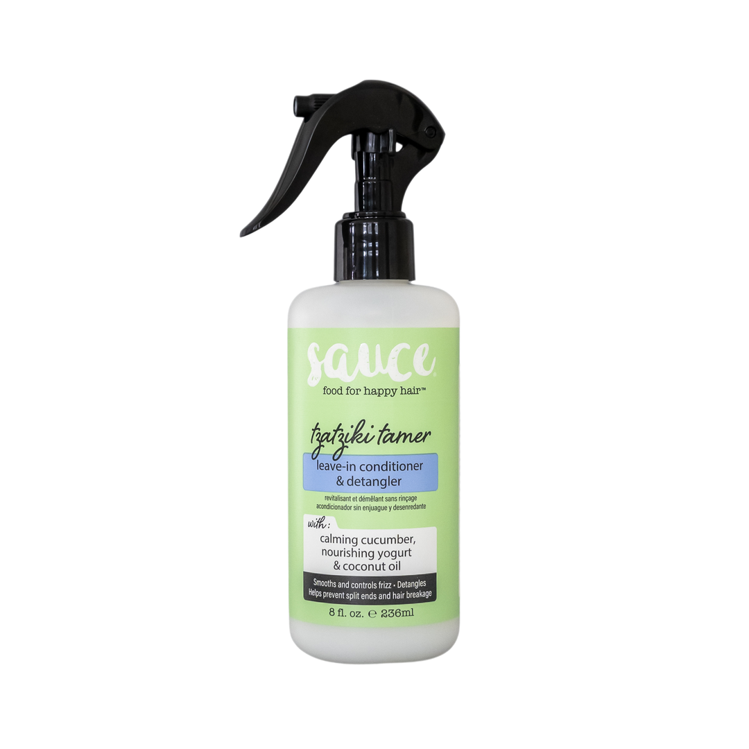- Smoothing Goodness: Detangle with ease with Sauce Beauty's Tzatziki Leave In Conditioner and Detangler Spray; It features a heavenly blend of cucumber water, coconut oil, & yogurt that will make your hair smoother than a freshly-made tzatziki dip