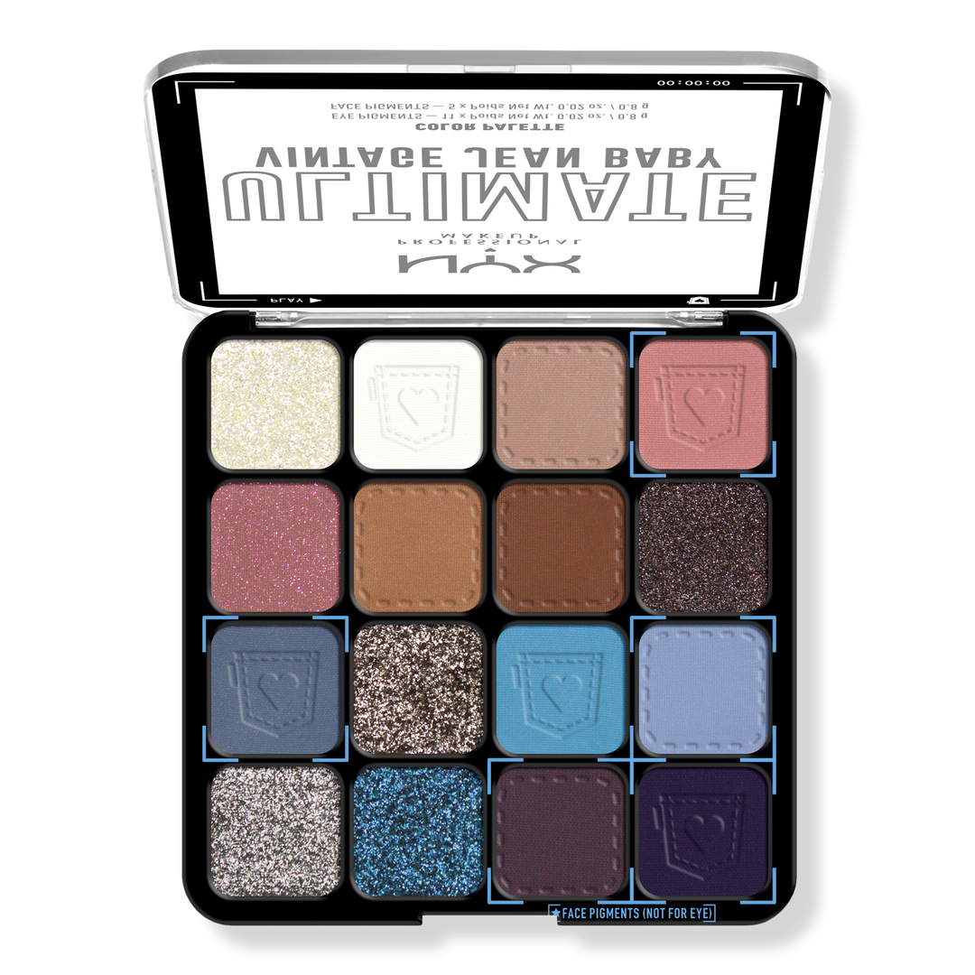 Turn up your look with the Ultimate Shadow Palette Vintage Jean Baby from NYX Professional Makeup. Packed with 16 pigmented vegan shades to compliment every skin tone.