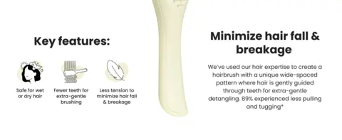 - Minimizes Hair Breakage: Thanks to the unique wide-spaced bristle pattern, hair is gently guided through the teeth, meaning there’s less tension on tresses, less hair fall and less breakage