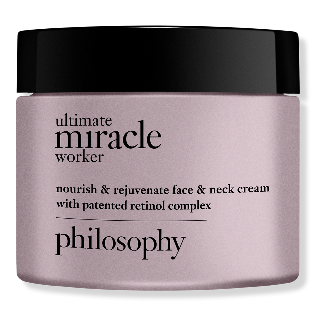 The Philosophy Ultimate Miracle Worker Nourish & Rejuvenate Face & Neck Cream is the ultimate nourishing retinol moisturizer you don’t need to build up to. this fast-absorbing cream replenishes skin with moisture and smooths the look of fine lines and wrinkles.