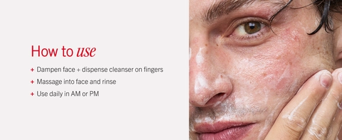 Dampen face and dispense a dime-sized amount of cleanser onto fingertips. Gently massage onto all areas of the face. Remove with water or a soft, damp washcloth. Use twice daily, morning and night.