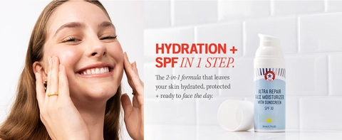 First Aid Beauty's Ultra Repair Face Moisturizer with Sunscreen delivers daily hydration + sun protection in a single step to simplify your morning routine.