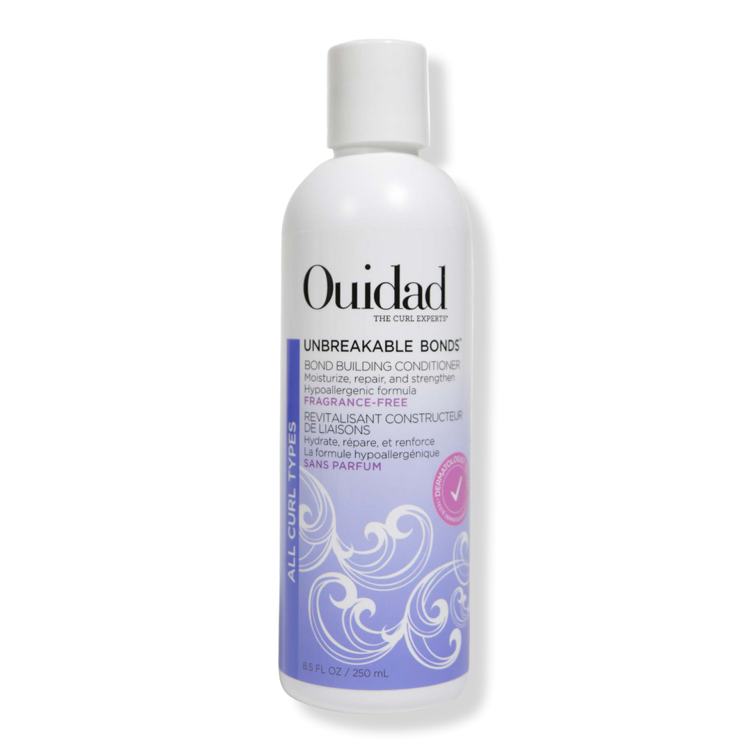 Ouidad's Unbreakable Bonds Bond Building Conditioner is a hydrating, dermatologist tested conditioner that works to improve the look of hair health and repair damage. It's fragrance-free and hypoallergenic for even the most sensitive of scalps.
