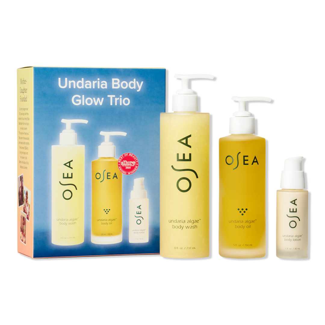 Give the gift of glow with OSEA’s limited-edition Undaria Body Glow Trio. This 3-step Undaria seaweed-powered ritual gently cleanses all over, then envelops your body in a sea of firming hydration for radiant, revitalized skin.