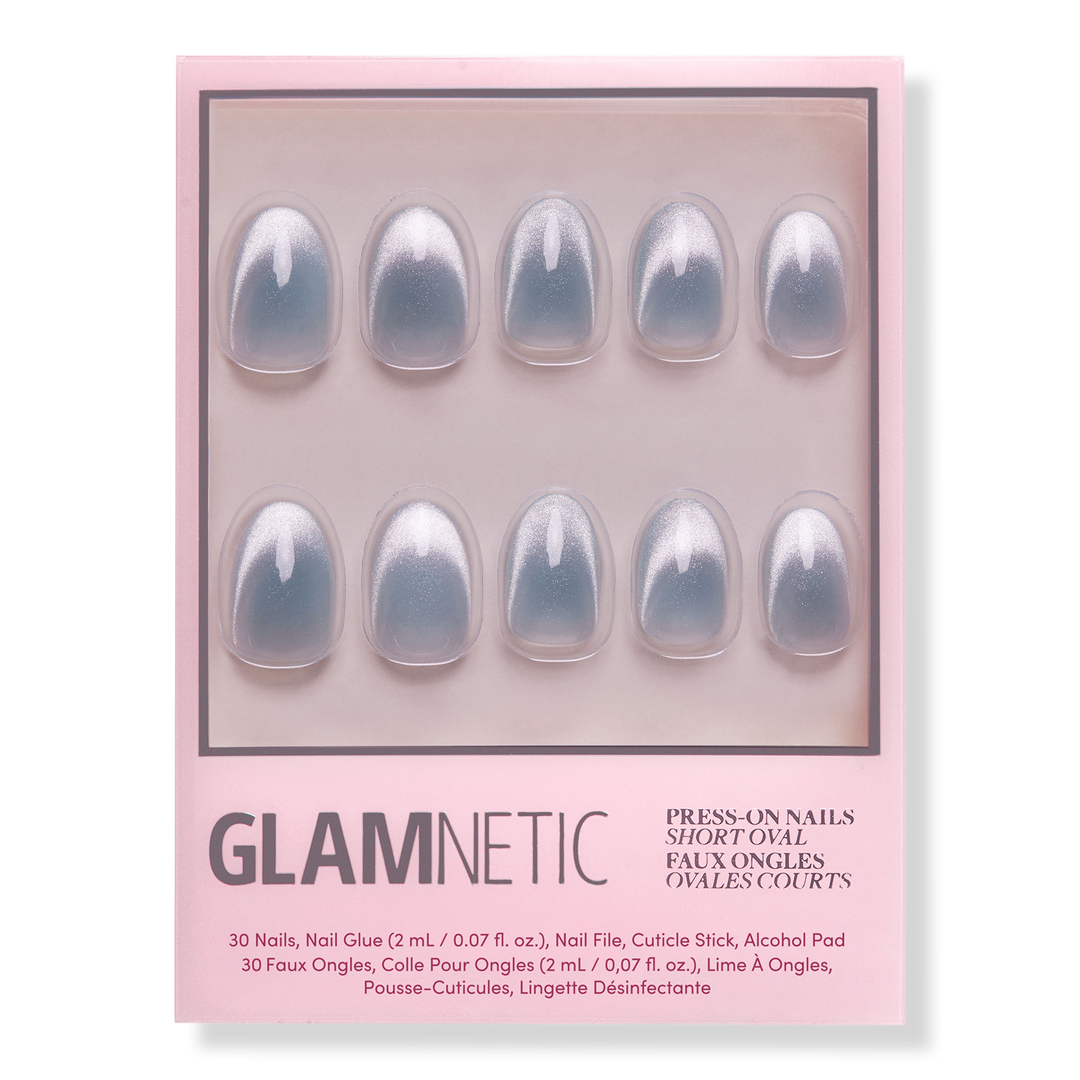 - Align Glamnetic nails with cuticle line and apply at a downward angle. Press down firmly and hold for 10-20 seconds