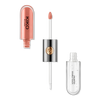Starting at the center of your lips, swipe the color base outward to corners, coating lips in an even layer of color. Wait 30 to 60 seconds for base to dry completely. Apply the lip gloss on top of the color base for a mirror-like color topper.