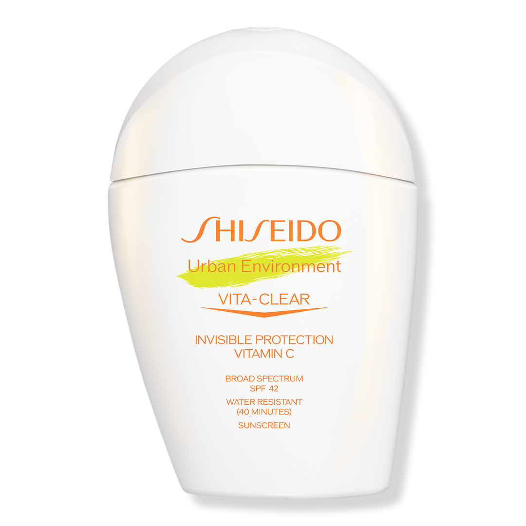 Shiseido's Urban Environment Vita-Clear Sunscreen SPF 42 is a lightweight, daily sunscreen that protects skin from harmful UV rays, while visibly brightening complexion with Vitamin C in just two weeks*.