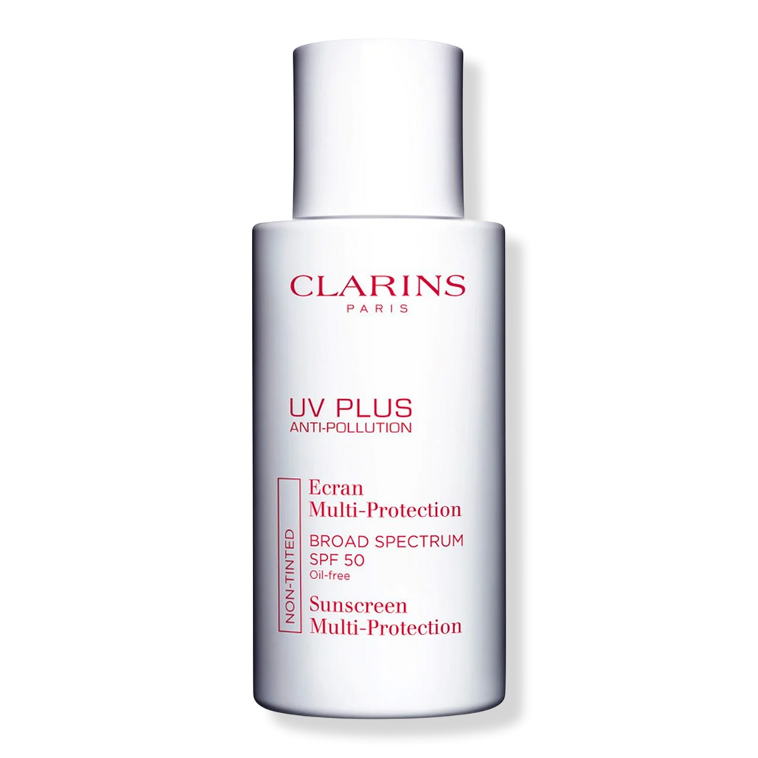 Clarins UV Plus Anti-Pollution Antioxidant Face Sunscreen SPF 50 is a daily, oil-free sunscreen for triple action and protection from UVA & UVB rays, free radicals, and environmental pollution.