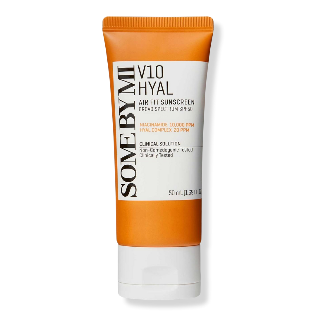 Light-as-air protection. Zero white cast. Made for sensitive skin, SOME BY MI V10 Hyal Air Fit Sunscreen SPF 50+ shields skin against UVA/UVB rays with a non-greasy finish. With innovative K-Beauty SPF technology, this hyaluronic acid sunscreen balances oil while delivering all-day hydration.