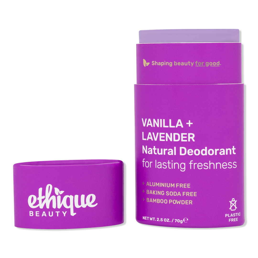 Stay fresh and confident with Ethique Beauty's Vanilla & Lavender Natural Deodorant. A clever blend of bamboo powder, zinc oxide, and magnesium hydroxide helps to keep underarms dry and odour-free. Scented with sweet lavender and vanilla, it's like a calming bedtime story for your pits.