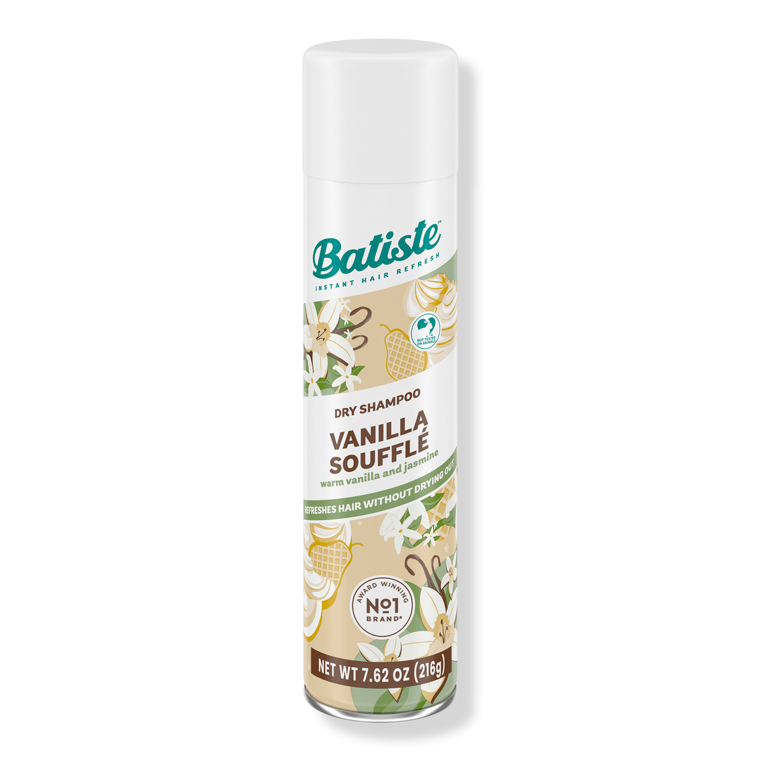 Batiste Dry Shampoo Vanilla Souffle scent leaves hair smelling enchanting with a delightful blend of creamy vanilla, delicate jasmine, and crisp pear sorbet. Its oil-absorbing, grease-busting properties add volume and texture by removing oil for that freshly washed feeling.
