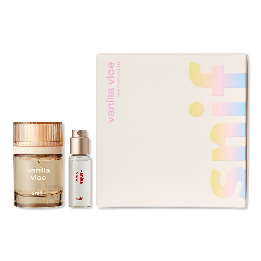 Snif Vanilla Vice Fragrance Set Eau de Toilette includes a full-size and travel-friendly mini of the crème de la crème of classic scents. This complex base of ice cream, vanilla, amberwood, and orcanox will make you melt.