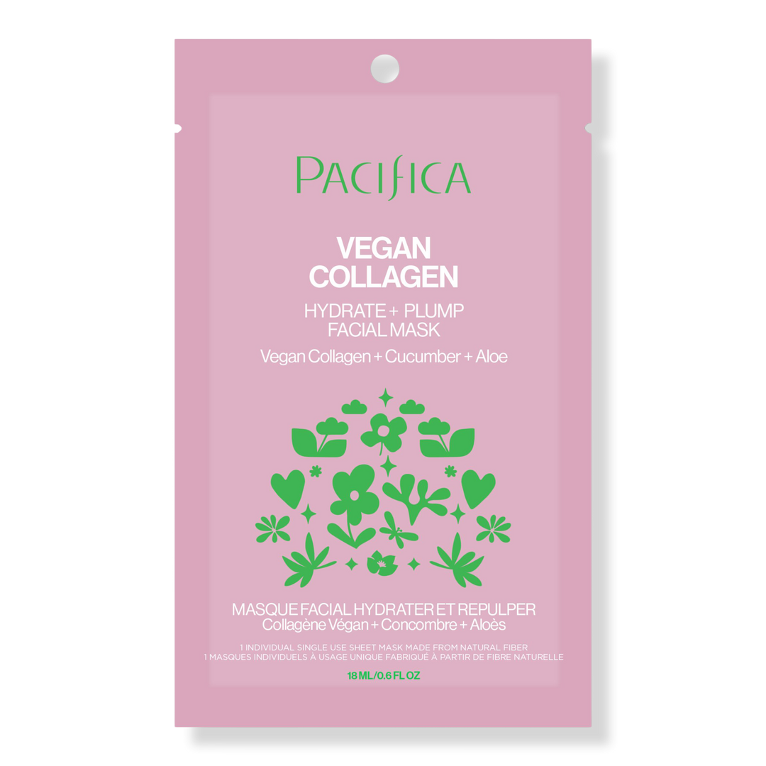 Pacifica's Vegan Collagen Hydrate & Plump Facial Mask is made with fine natural microfibers, and vegan collagen peptides for instantly nourished, plumper-looking skin.