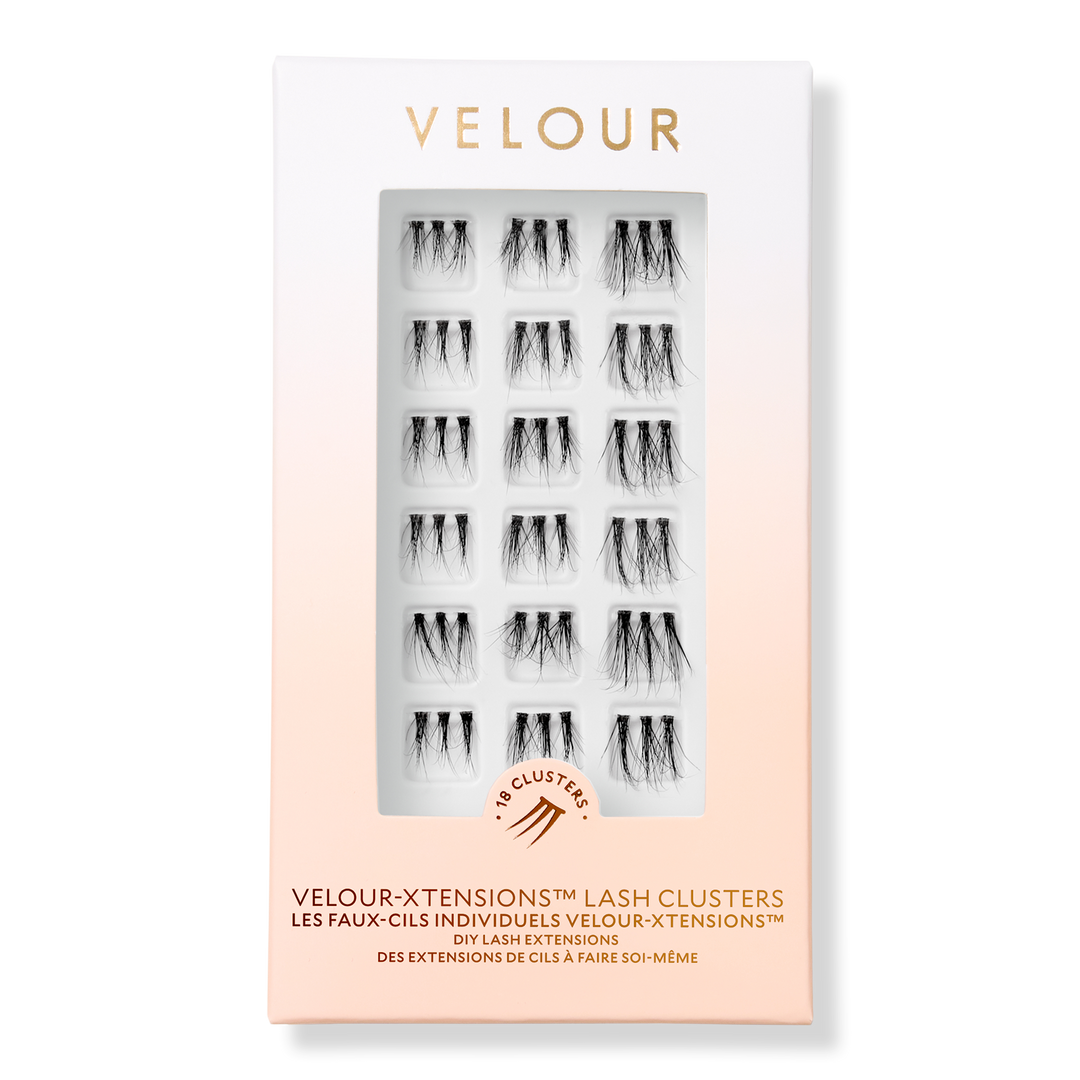 Velour Lashes lightweight Velour-Xtension Classic Lash Clusters are completely customizable, so you can do your lashes your way. Use the same length clusters for a natural, round shape (12, 12, 12) or incrementally longer clusters for a flared, cat-eye shape (10, 12, 14).