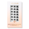 Velour Lashes lightweight Velour-Xtension Classic Lash Clusters are completely customizable, so you can do your lashes your way. Use the same length clusters for a natural, round shape (12, 12, 12) or incrementally longer clusters for a flared, cat-eye shape (10, 12, 14).