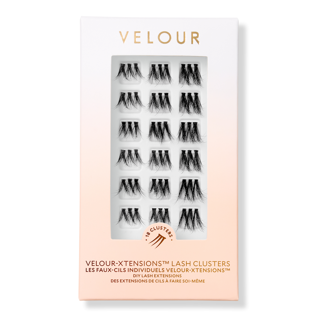 Velour Lashes lightweight Velour-Xtension Volume Lash Clusters are completely customizable, so you can do your lashes your way. Use the same length clusters for a natural, round shape (12, 12, 12) or incrementally longer clusters for a flared, cat-eye shape (10, 12, 14).
