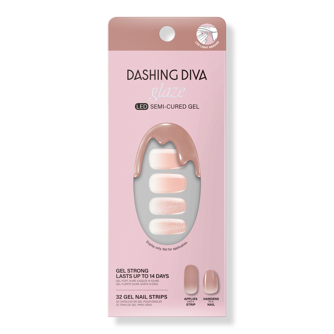 Get the pro-finish and sculpted effect of a salon gel manicure at home with ease with Dashing Diva's Velvet Blush GLAZE. GLAZE innovation is a semi-cured gel strip that cures under an LED lamp, delivering salon results: molded shape, mega volume, mirror shine that's gel strong for up to 14 days.