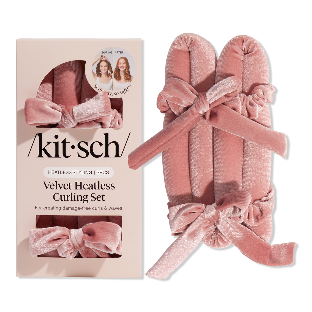 Effortless curls and waves - without the heat damage! The Kitsch Velvet Heatless Curling Set styles dry or damp hair for a fresh-from-the-salon look. Its extra-soft velvet for comfortable day and overnight wear, resulting in bouncy, voluminous curls.