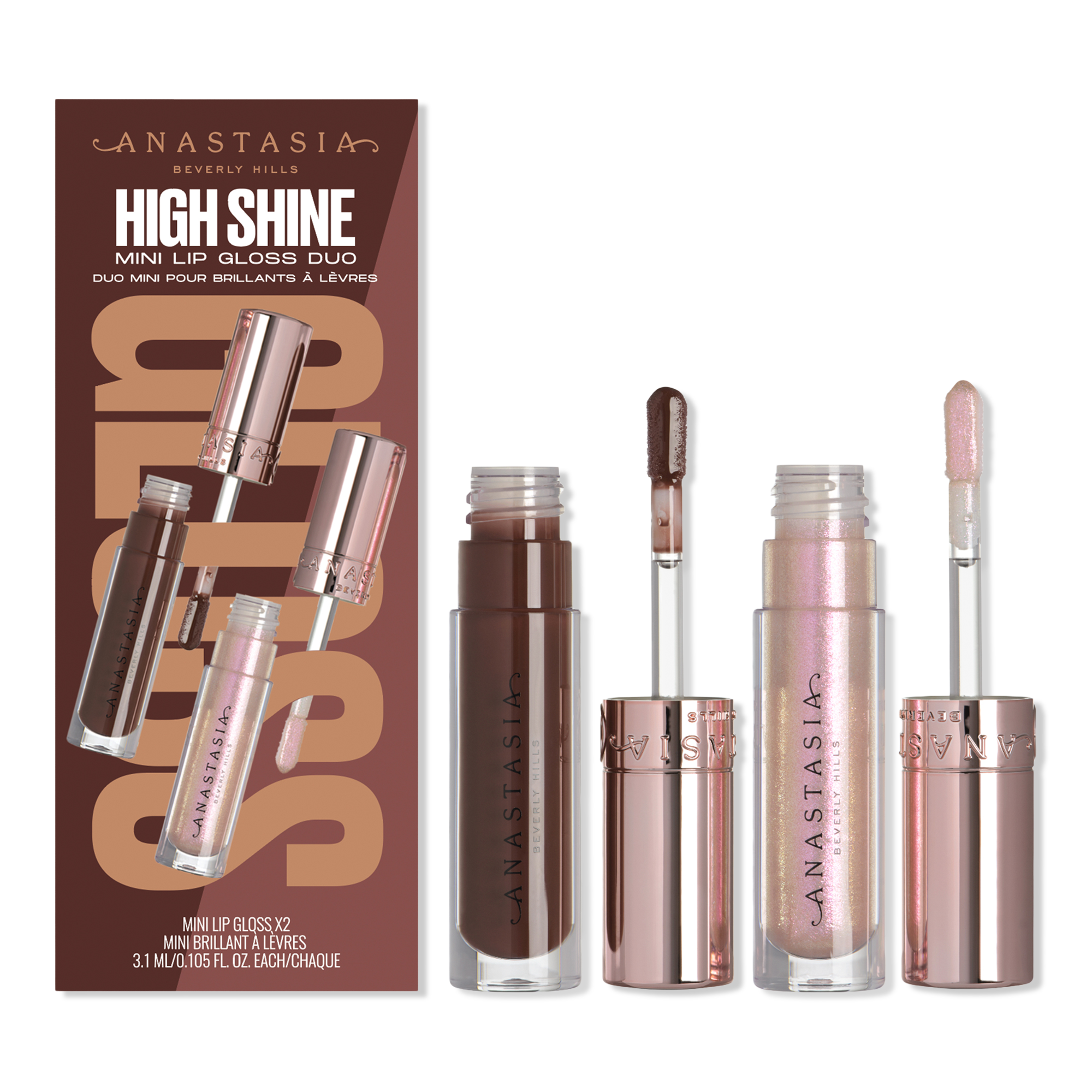A duo of best-selling, velvet-smooth Anastasia Beverly Hills Mini Lip Velvet lip mousse with weightless, full pigment, true-matte color, cushioned, comfortable wear and a smoothing lip finish that allows you to line and apply with a multifunctional, teardrop-shaped cushioned wand.