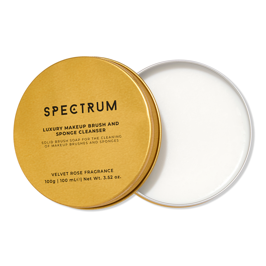 Give your tools the TLC they deserve. This Spectrum Velvet Rose Brush Soap lifts makeup, oils, & daily buildup from brushes & sponges. Leaving fibers fresh & ready for a flawless finish. Housed in a chic tin with a textured silicone mat in the lid for a deeper clean, it’s a sink-side essential.