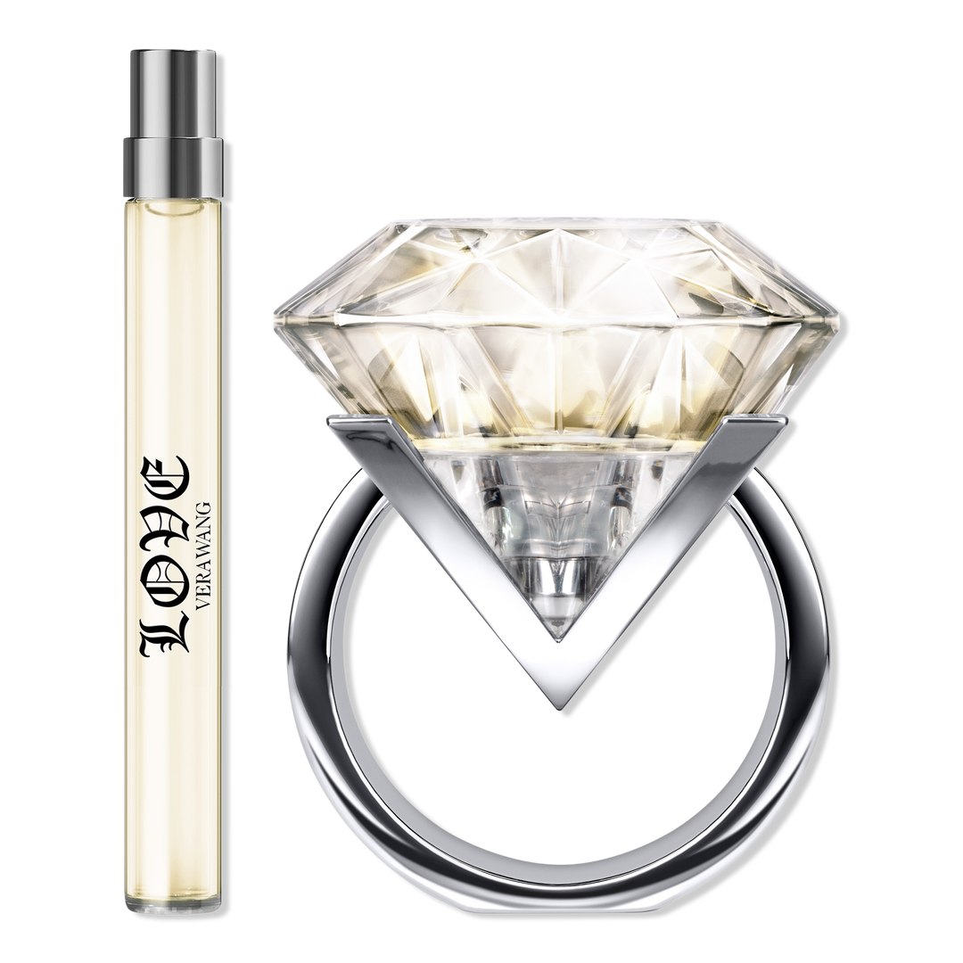 Discover this Vera Wang Eau de Parfum, a solitaire diamond ring-shaped fragrance embodying the essence of modern romance and timeless elegance—Vera Wang Love.