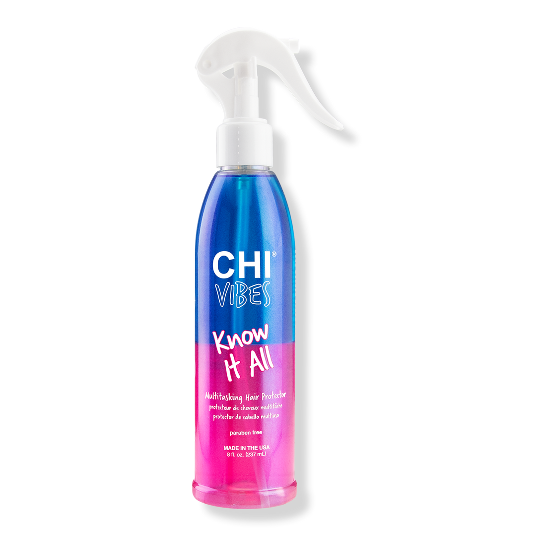 Why spend on several products when you can buy 1 that "knows it all." From heat protection, speeding dry time, blocking humidity and reducing frizz, the CHI Know It All Multitasking Hair Protector has over 21 benefits.