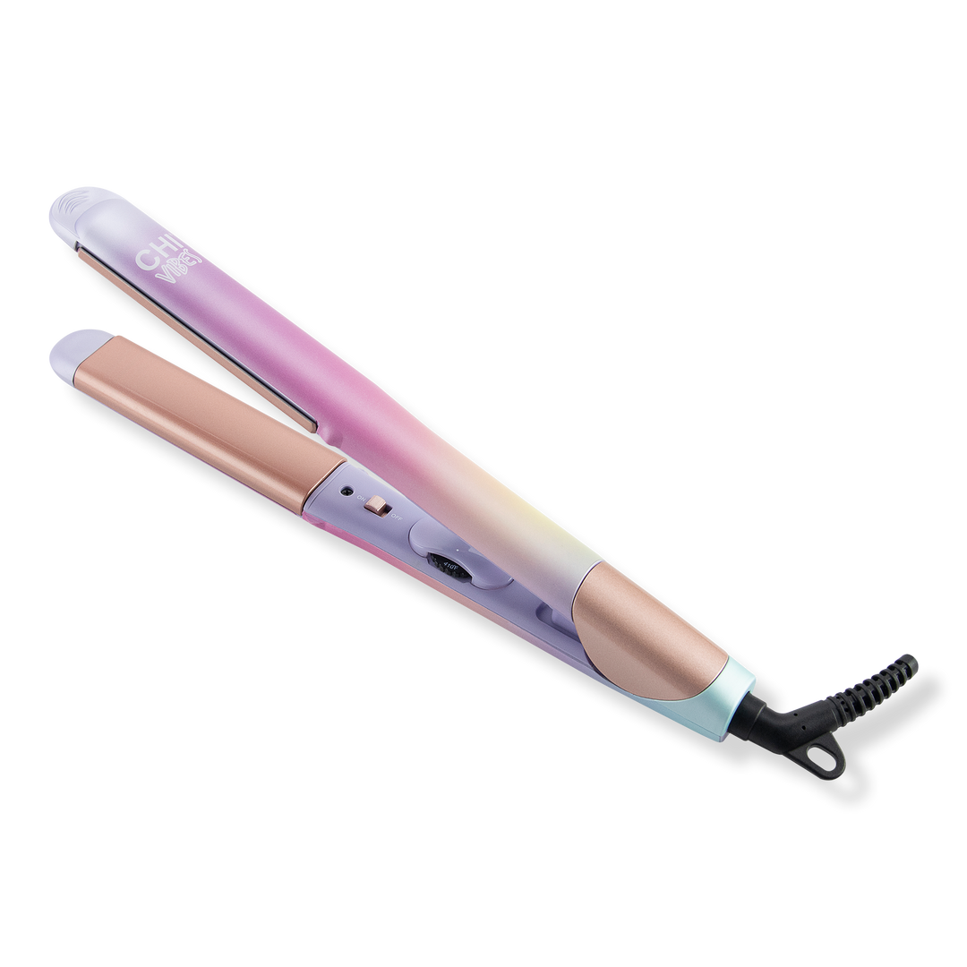 The CHI Vibes "On the Edge" hairstyling iron features ceramic plates that round around the outer sides of the iron. The curved plates allow for faster styling in fewer passes while getting closer to the scalp to tame hard to reach roots.