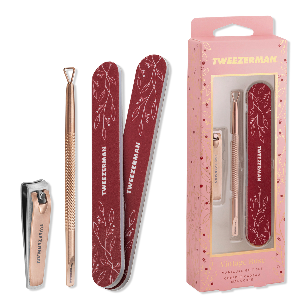 Wrapped in rich seasonal hues and metallic rose gold finish, the Tweezerman Vintage Rose Manicure Gift Set has all the essential tools to shape your nails and care for your cuticles with true precision.