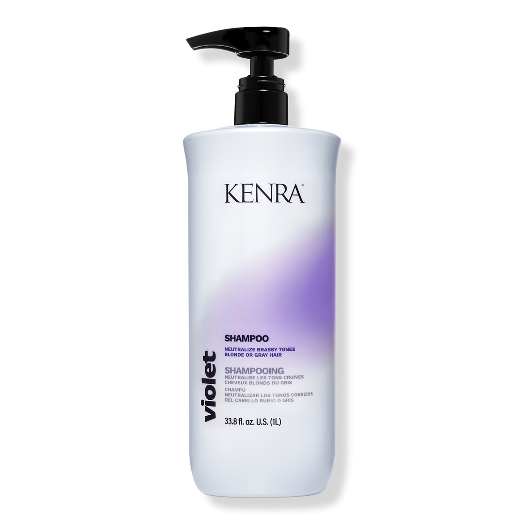 Kenra's Violet Shampoo is a violet pigmented shampoo for enhancing vibrancy of blonde or gray hair by helping to eliminate brassy tones.