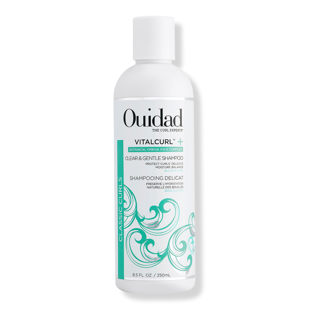 Ouidad's VitalCurl+ Clear & Gentle Shampoo protects curls' delicate moisture balance while cleansing and rebalancing pH levels for optimal curl health and consistency.