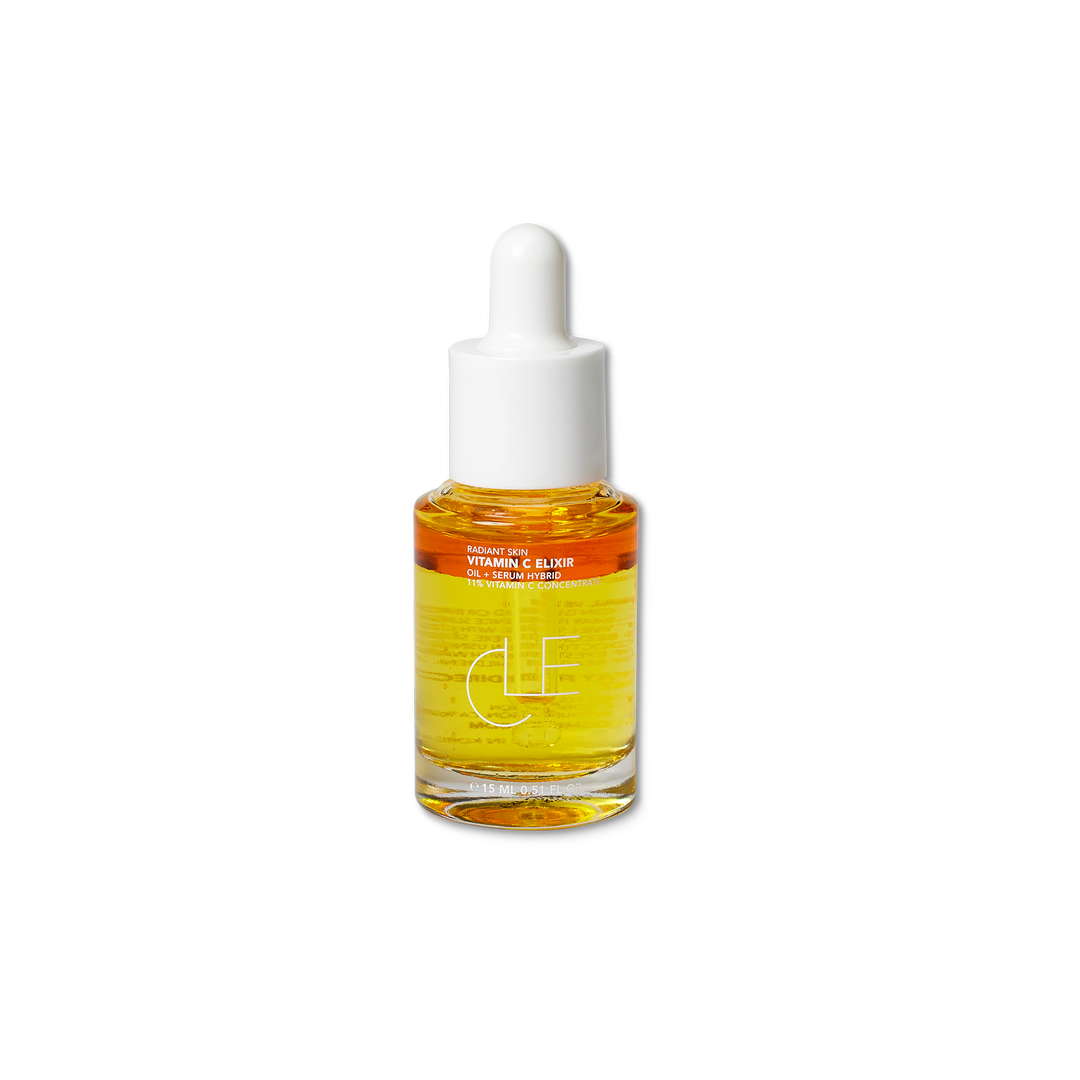 CLE Cosmetics Vitamin C Elixir is a 2-in-1 oil and serum hybrid powered by 11% pure Vitamin C. This brightening formula helps improve skin tone, boost radiance, and support smoother, more hydrated-looking skin over time.