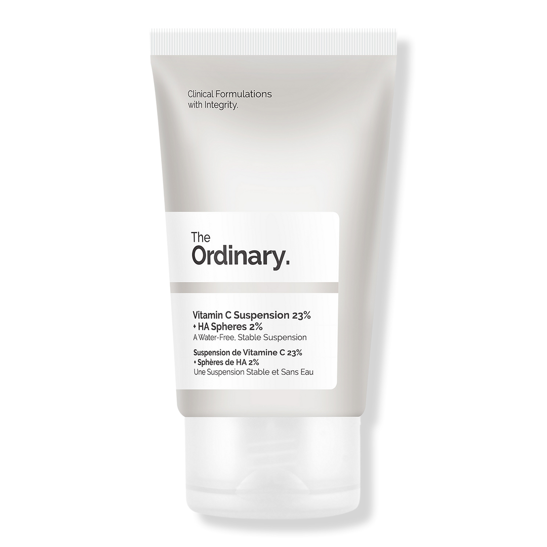 The Ordinary's Vitamin C Suspension 23% + HA Spheres 2% Serum is a water-free, silicone-free, suspension of 23% pure L-ascorbic acid. This water-free suspension with a powdery finish is great for those looking for solutions for uneven tone, signs of aging, and antioxidant support.