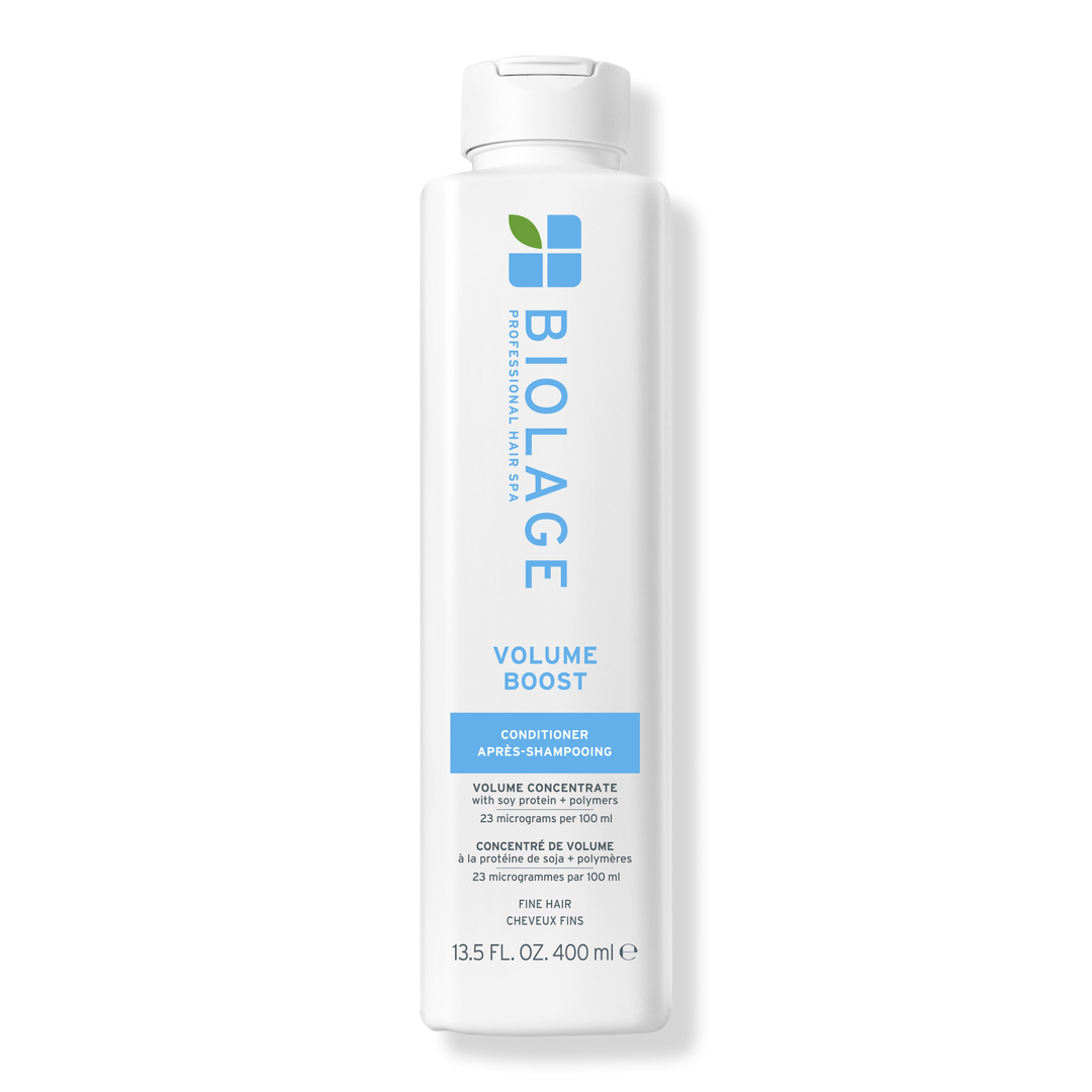 Voluminous tresses await with Biolage Volume Boost Conditioner for Fine Hair. Micro-filtered soy protein and polymers weightlessly moisturize hair, boosting volume and root lift. Hair regains its natural softness with an enviable shine.