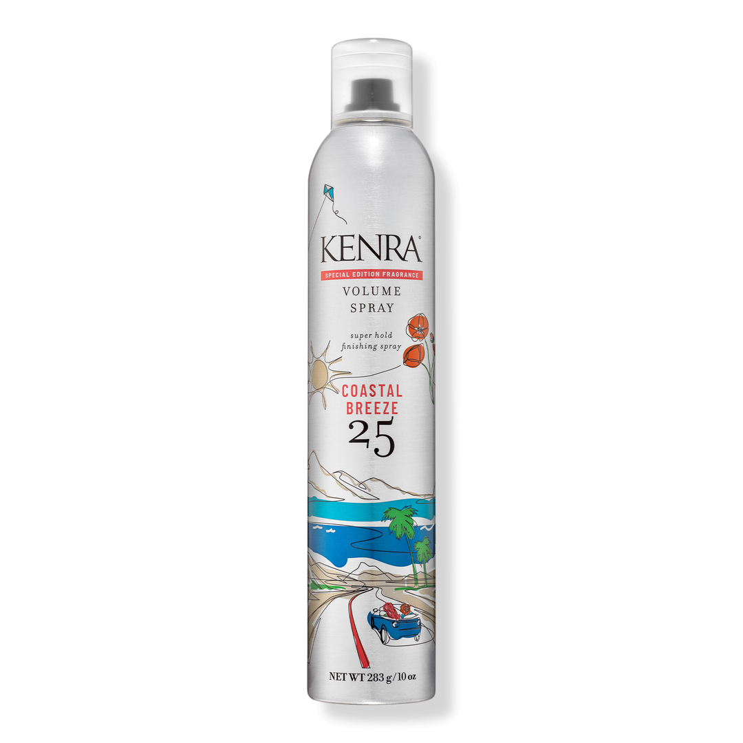 Same iconic high hold formula; Special edition fragrance! Kenra Volume Spray 25 Coastal Breeze is a fragrance that sweeps through your hair, carrying the refreshing sea air blended with the essence of coconut, melon and amber.