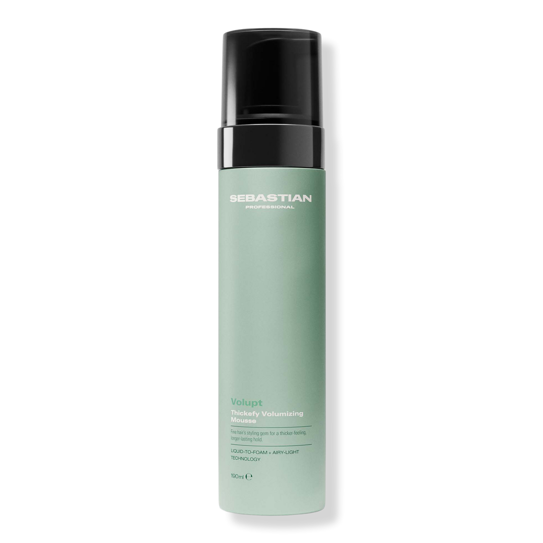 Sebastian Professional Volupt Thickefy Volumizing Mousse, a volumizing styling mousse that creates effortless-looking body and lightweight hold. This styling gem for fine hair gives a thick-feeling, long-lasting hold and features liquid-to-foam tech for an airy-light feel.