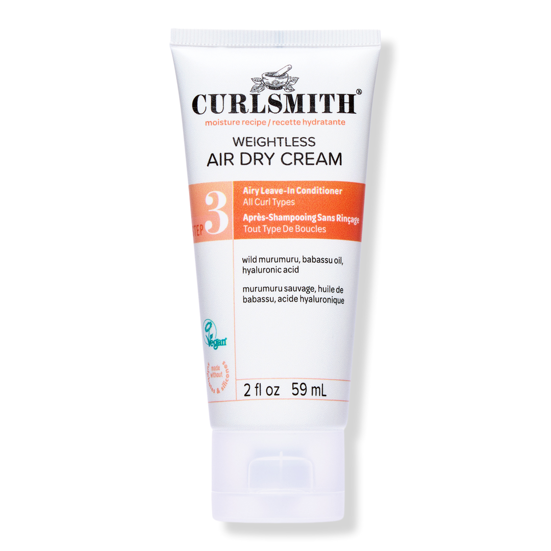 Curlsmith Weightless Air Dry Cream is a lightweight leave-in conditioner that enhances curl texture and hydrates the hair without weighing it down.
