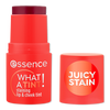 Add a juicy splash of color with essence What A Tint! Staining Lip & Cheek Tint. This balm-textured formula melts in for a fresh, radiant flush with a lightweight feel. Fruity-scented, long-lasting, and effortless color in seconds.