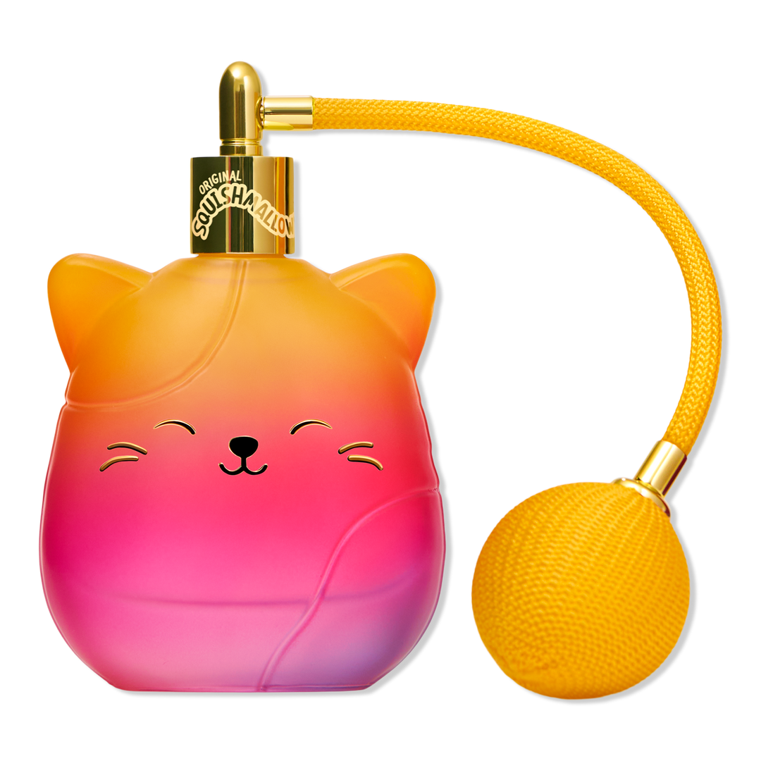 Squishmallows Fragrances' Whisked Away Tropical Sunset is a fruity floral fragrance inspired by Cam the Cat's sunset naps on the beach. Like a tropical vacation in a bottle, this sun-drenched blend of passionfruit mousse, beach jasmine, and warm driftwood transports you to a golden-hour getaway.