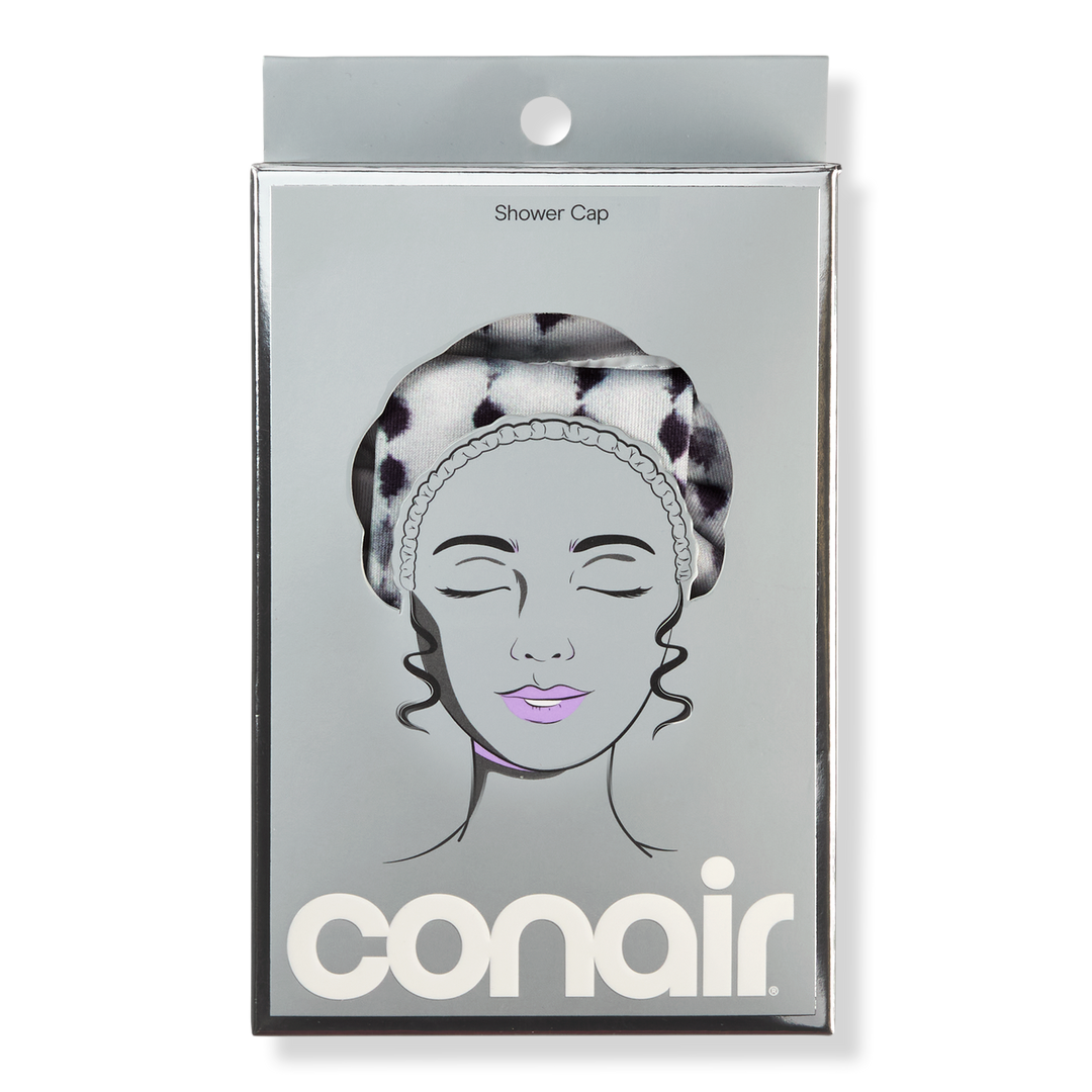 Keep hair dry between wash days with the stylish Conair White & Black Polka-Dot Shower Cap. Designed to cover hair comfortably while you bathe, it helps protect hairstyles so they last longer.